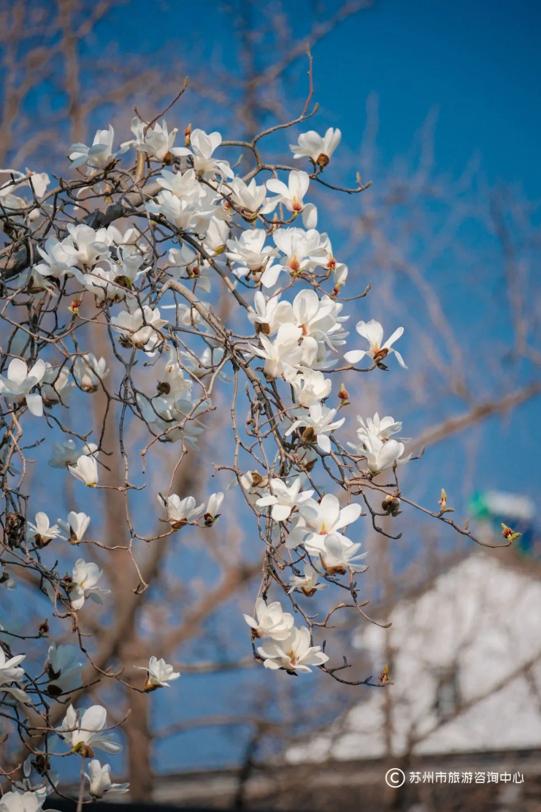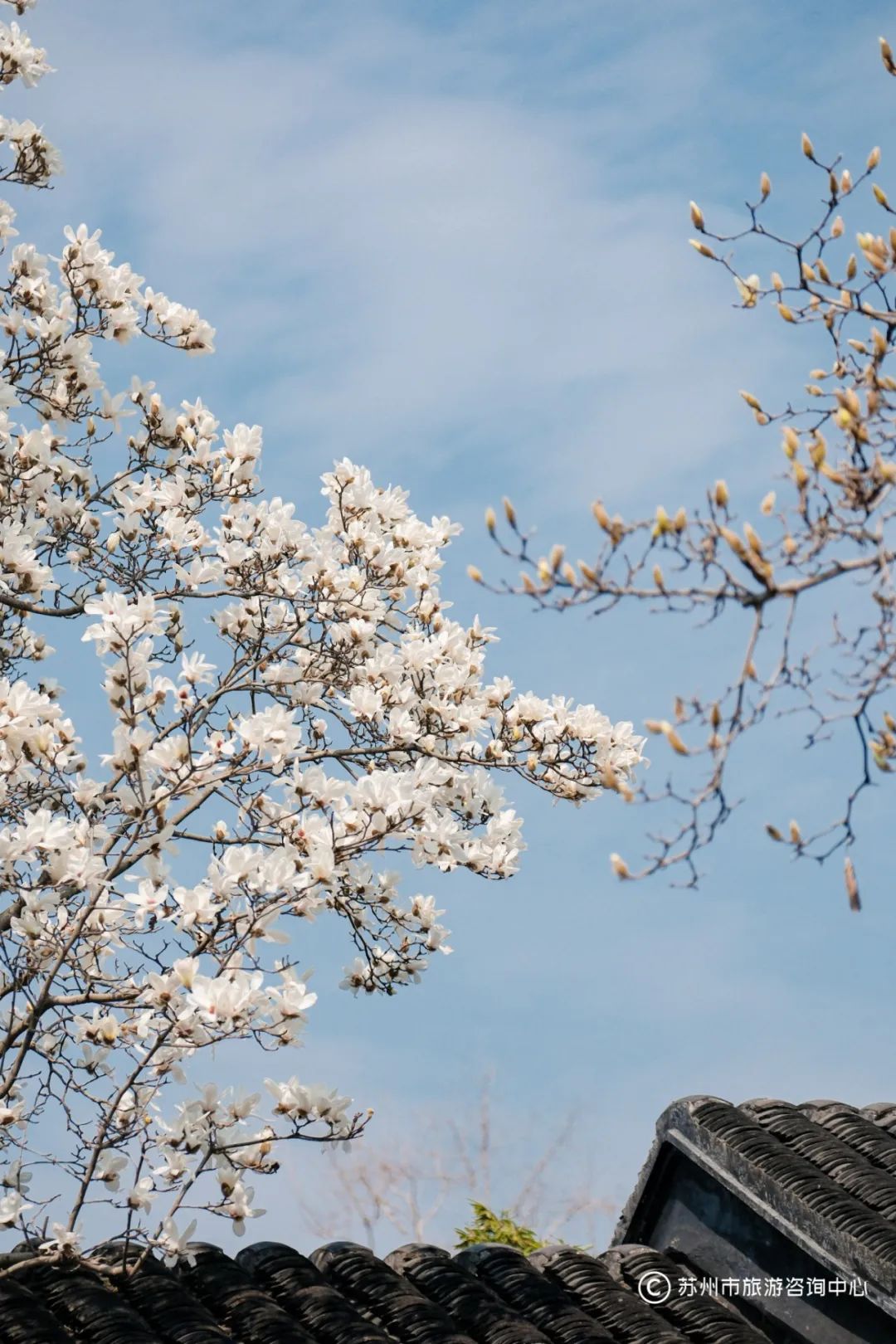 此刻的苏州玉兰正陆续开放