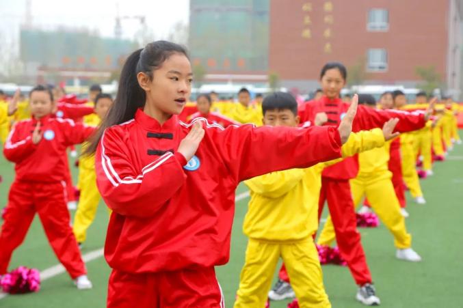 ▲曲阜师范大学附属实验学校开展武术大课间活动,学生们在教练的指导下学习太极拳、长拳等基础武术动作,一招一式,刚柔并济,尽显中华武术的独特魅力。