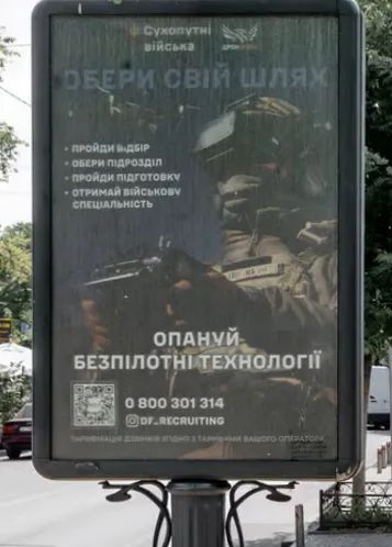 为改善征兵形象,乌克兰国防部在基辅各地竖起了宣传广告,各军队单位通过这些广告描绘了一幅更积极的战斗画面,以提高军事招募的吸引力。政府认为,相比于强制征兵,志愿入伍是一种更理想的方式。