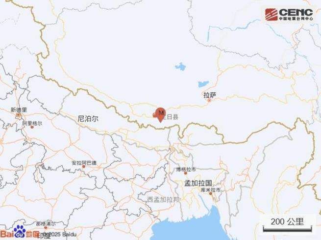 据中国地震台网正式测定,3月8日17时19分在西藏日喀则市定日县发生3.0级地震,震源深度10公里,震中位于北纬28.40度,东经87.50度。