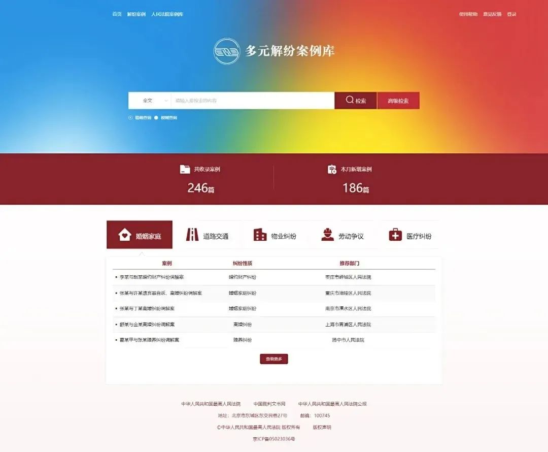 多元解纷案例库。来源:最高人民法院微信公众号“两个案例都引入了知识产权人民调解组织进行调解,他们对纠纷争点把握更为精准专业,法院做实指导调解职能,矛盾双方更容易达成一致。”随即,屈丽娜抓起电话,拨通了黄浦区市场监督管理局(知识产权局)知识产权保护管理科:“这案子得‘两条腿走路’——你们主攻调解,我们做好司法兜底!”