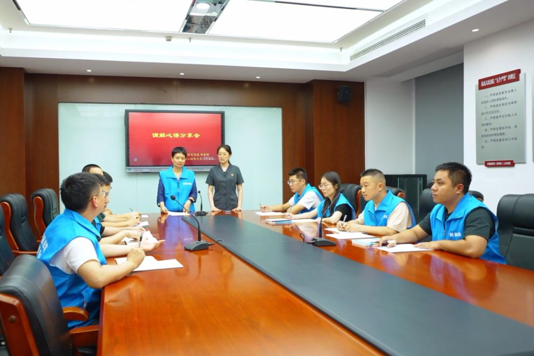 江苏无锡新吴区法院江溪法庭组织跟班学员开展调解心得分享会,学员分享在实训期间亲历案例,畅谈调解感悟与经验。唐清妍 摄顾陆炜是江溪街道中海社区的一名专职网格员,也是这次“跟班学习”的学员之一。临近结业,培训班要求每位学员在法官指导下化解一个社区纠纷,当一次“编外法官”。