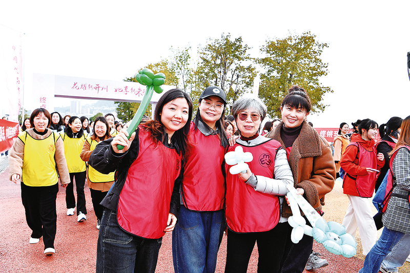 女职工在活动现场合影留念。记者 朱书灵 摄