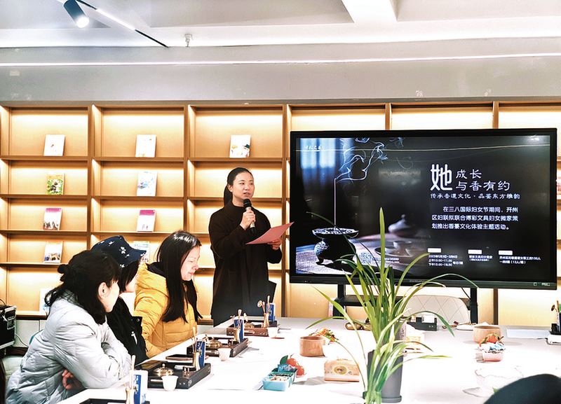 妇女代表们围坐在一起,认真聆听老师的讲解,感受香道文化的独特魅力。