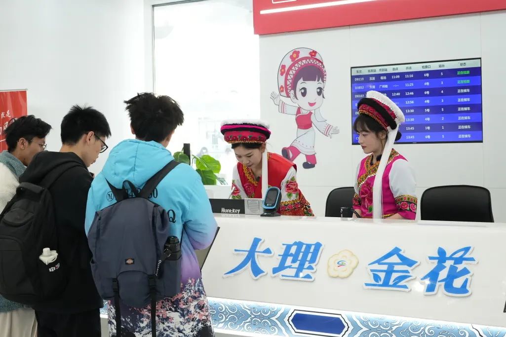 结合滇西地区民族旅客较多的实际,各车站安排客运人员身着民族服装在服务台值守,随时为有需求的学生旅客提供车票改签、失物招领、列车信息查询等服务,为广大学子提供便捷周到的服务。