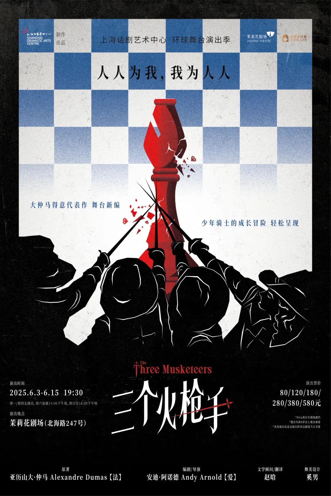 《三个火枪手》是大仲马的代表作,晚年的他认为“《三个火枪手》是他最好的作品”。该著作出版近200年以来被翻译成几十种语言,长销不衰,曾被《时代周刊》选为伟大的100部长篇小说之一。上海话剧艺术中心力邀爱尔兰知名编剧、导演,爱尔兰戏剧协会董事会成员、苏格兰剧院评论家奖及终身成就奖获奖者安迪·阿诺德Andy Arnold进行舞台新编,将轻松浪漫呈现一场少年骑士的成长冒险。