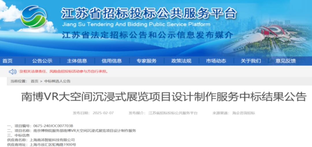 近日,南京博物院VR大空间沉浸式展览项目招标结果公告,商汤科技成功中标。项目将依托南京博物院的丰富文物资源,结合商汤大空间XR技术、AIGC视频内容生成技术等,打造示范性的VR大空间沉浸展。