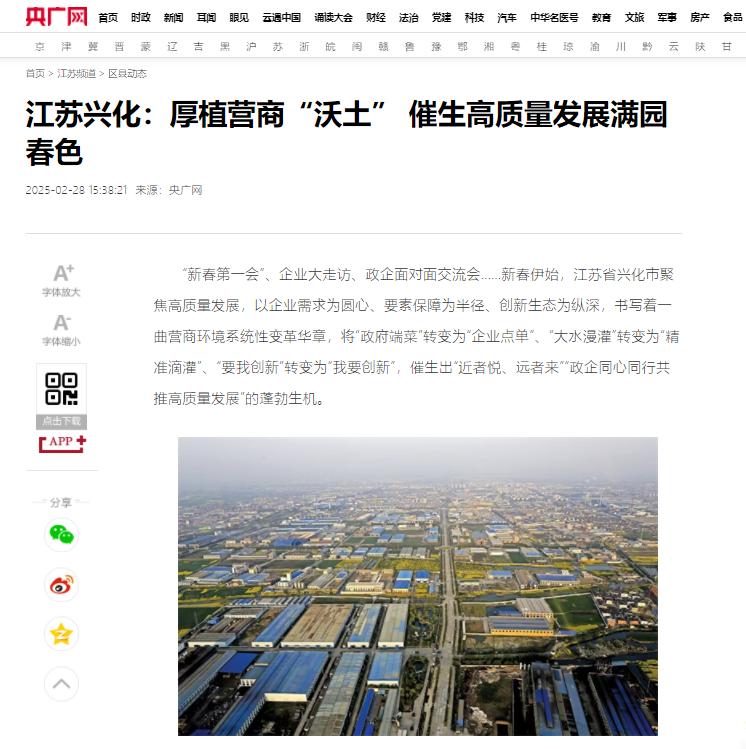 央广网报道《江苏兴化:厚植营商“沃土” 催生高质量发展满园春色》