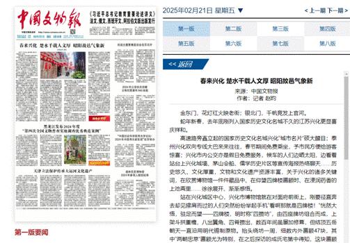 《中国文物报》推出《春来兴化 楚水千载人文厚 昭阳故邑气象新》