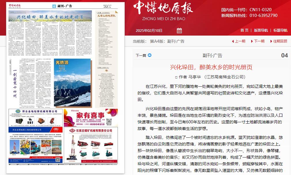 《中煤地质报》推出《兴化垛田,醉美水乡的时光册页》