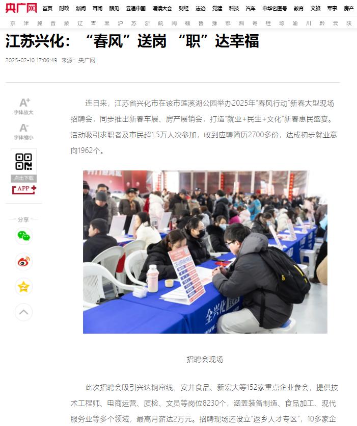 央广网推出《江苏兴化:“春风”送岗 “职”达幸福》