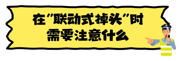 进入“联动式掉头”车道时,按序按号进入相应的掉头车位进行掉头,此时,应选择最前方的掉头车位进行掉头。