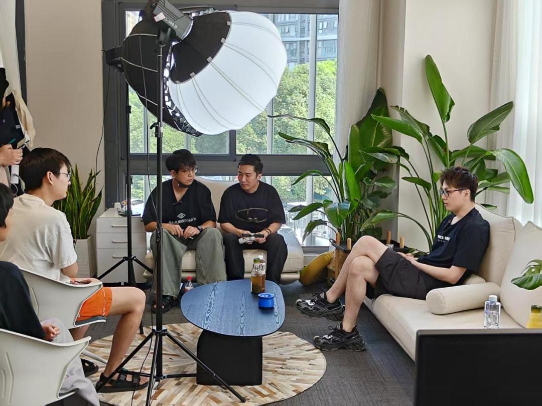 孙木子与杨奇共同接受采访○ 2017年的除夕前夜,“图形科学”诞生于一场老朋友们的聚会上,参加聚会的除了日后的品牌主理人孙木子,还有“游戏科学”的两个老熟人——冯骥和杨奇。