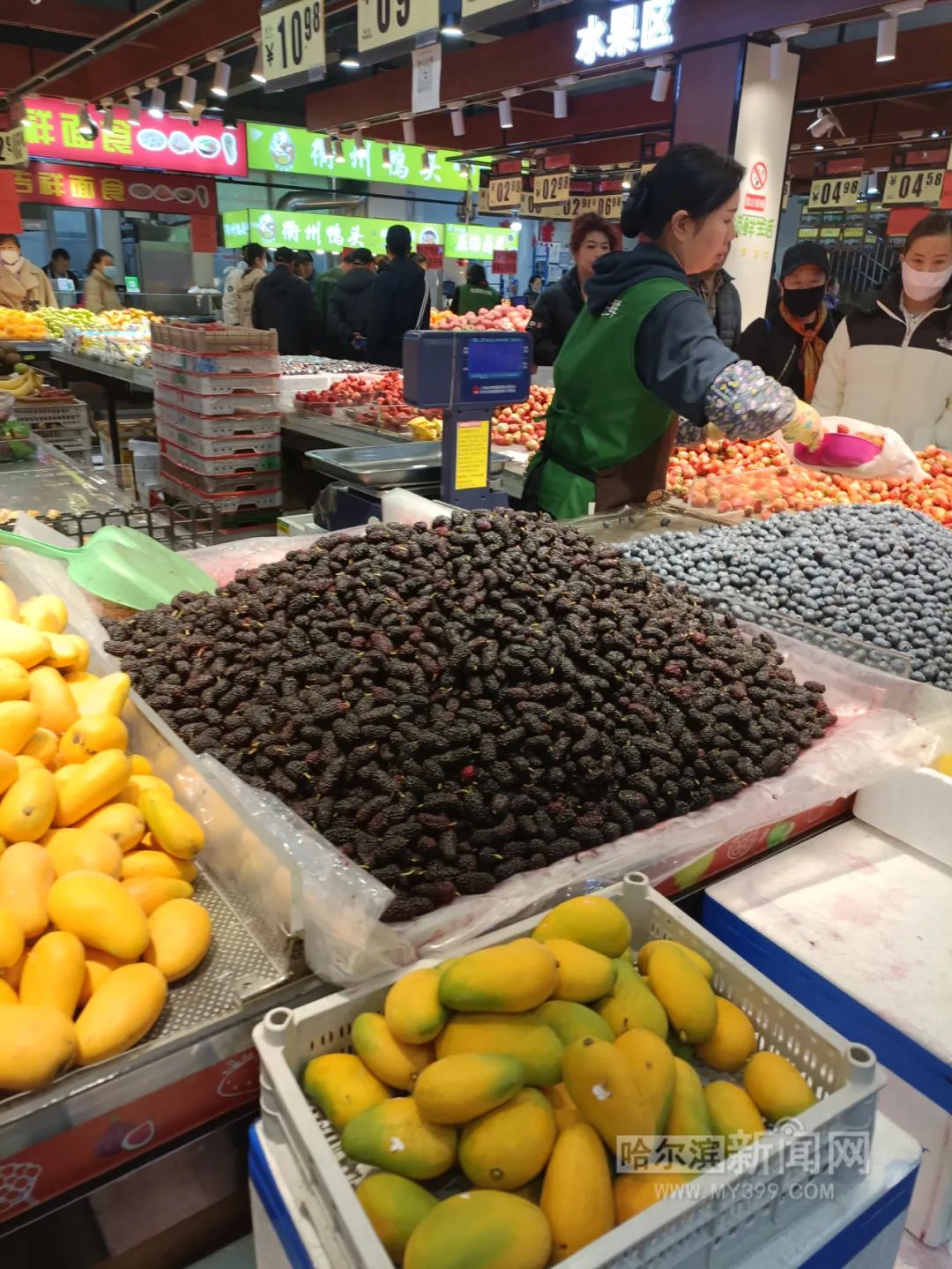 近日,哈埠市场上桑葚抢“鲜”登场,为春日增添了一抹甜蜜。然而,记者走访发现,哈埠不同销售点位的桑葚价格差异巨大,从每斤6元到14元不等,业内预计最便宜的时节要等到4月中旬左右 。