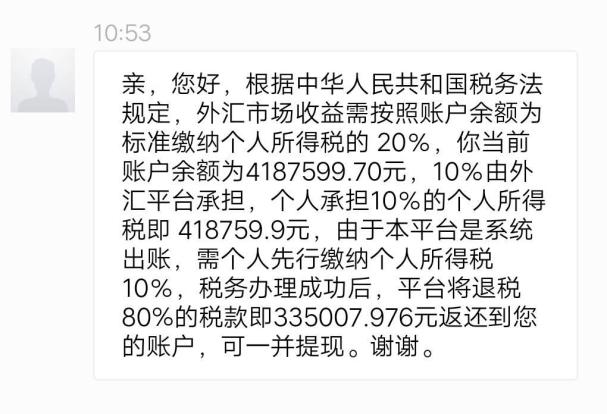 “客服说因为是大额提现,需要交提现金额10%的税,提现以后会退80%的税款给我们”
