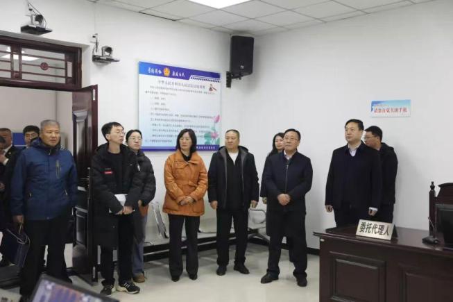(“法庭开放日”活动来访人员参观“马锡五审判方式”工作室)悦乐法庭“调立审执访”功能分区、操作终端、专门工作场所等全面投入使用,结合“一张网”实操培训,法庭“五位一体”工作已全面运行。