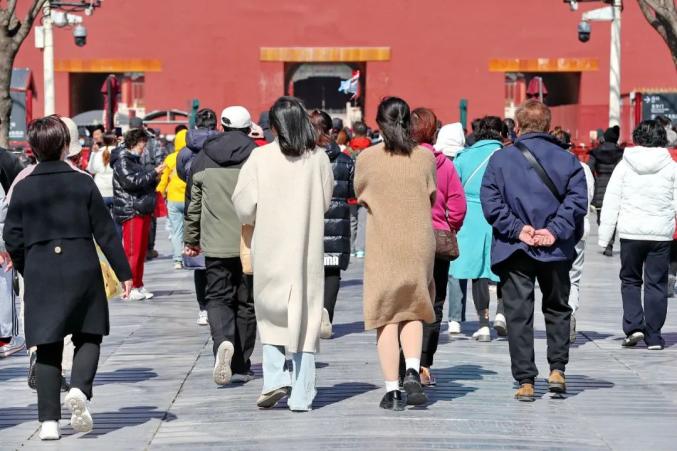 △7日,北京气温攀升暖意融融,故宫游客“乱穿衣”。01