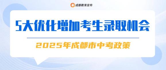 近日,成都市招考委、成都市教育局印发《2025年成都市高中阶段学校统一招生考试工作实施规定》。今年中招政策聚焦5大优化,进一步推进育人方式变革,促进普通高中多样化有特色发展,为广大学生提供更加多元化的选择,助力考生选填心仪学校,满足学生高中阶段多样化发展需求,助力学生全面而有个性的成长。