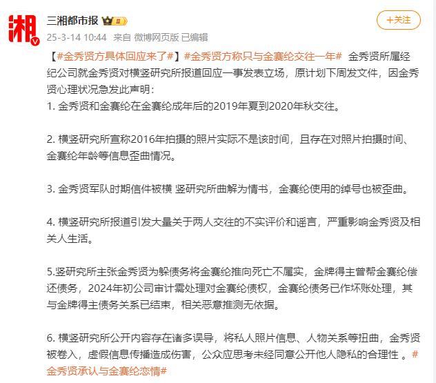 原标题:《发表万字长文,称交往时女方已成年,金秀贤承认与金赛纶恋情!知情人称其“在剧组挨个道歉”》