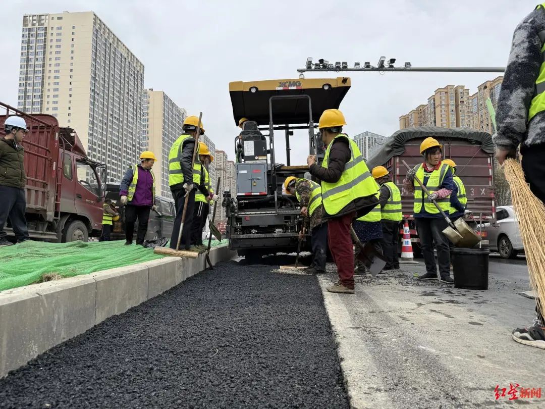 当天上午9时许,政事君来到成洛大道与群辉北路交叉口看到,成洛大道辅道与主道间已停放多台工程车辆。“等9点半,早高峰过了之后,现场就启动沥青铺筑工作,一上午就能铺完。”成都市龙泉驿区城管和综合执法局市政科工作人员肖体强介绍。
