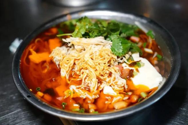 熟鸡脯肉手撕成有嚼劲之丝,配以入口即化之豆花,吃起来既有油辣椒浓郁的辣味,又有豆花的清香,汤汁鲜美,面条韧劲十足,简直太安逸了!