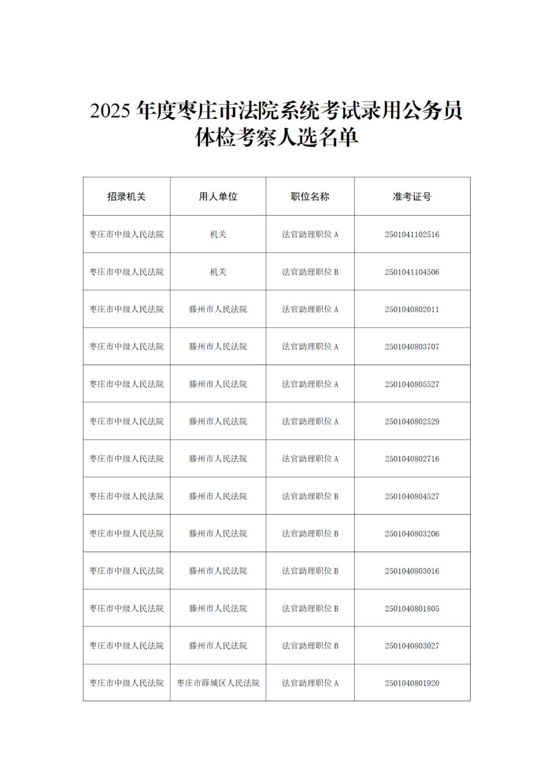 2025年度枣庄市法院系统考试录用公务员体检考察公告