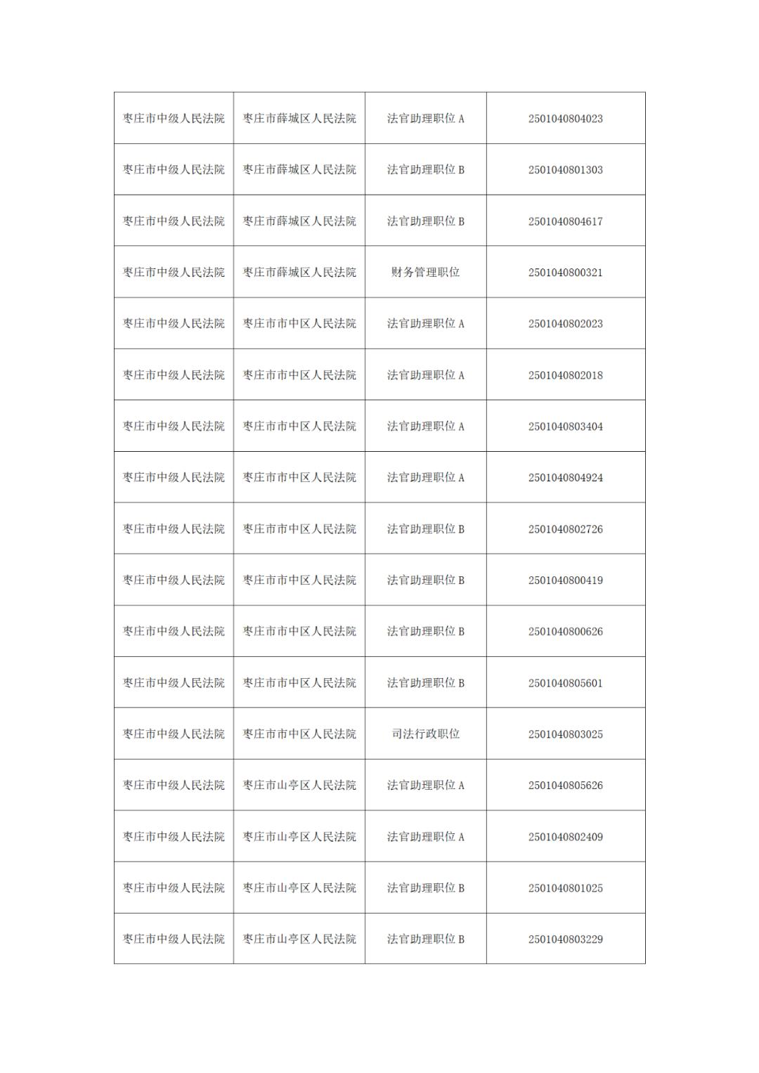 2025年度枣庄市法院系统