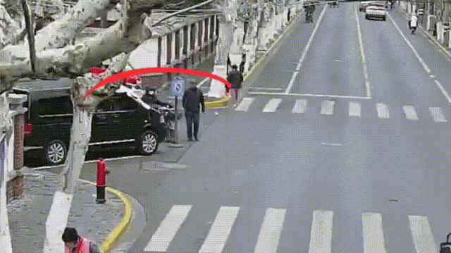 从老人前方穿过