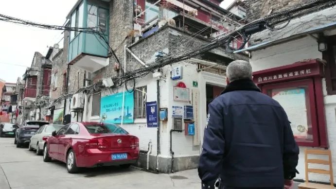 老人在途径溧阳路一弄堂口时