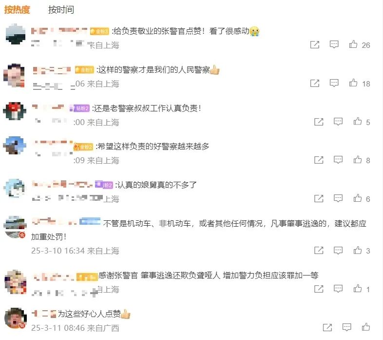 张警官的敬业精神引发市民热议