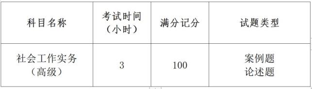 3.高级社会工作师:考试科目为1门,即《社会工作实务(高级)》(主观题)。考试试题类型及时间如下: