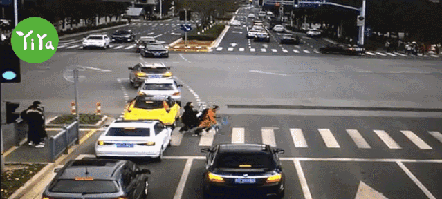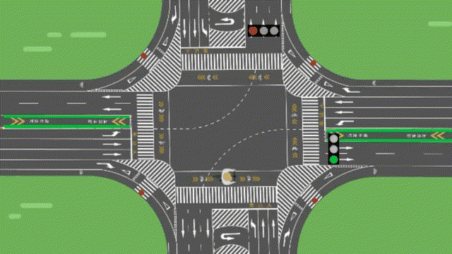 在十字路口通行时,一般都会设置有安全岛及二次通行的斑马线,而此时有些同学为了赶时间或者走捷径去横穿马路至对面,就会出现下面这种危险情况: