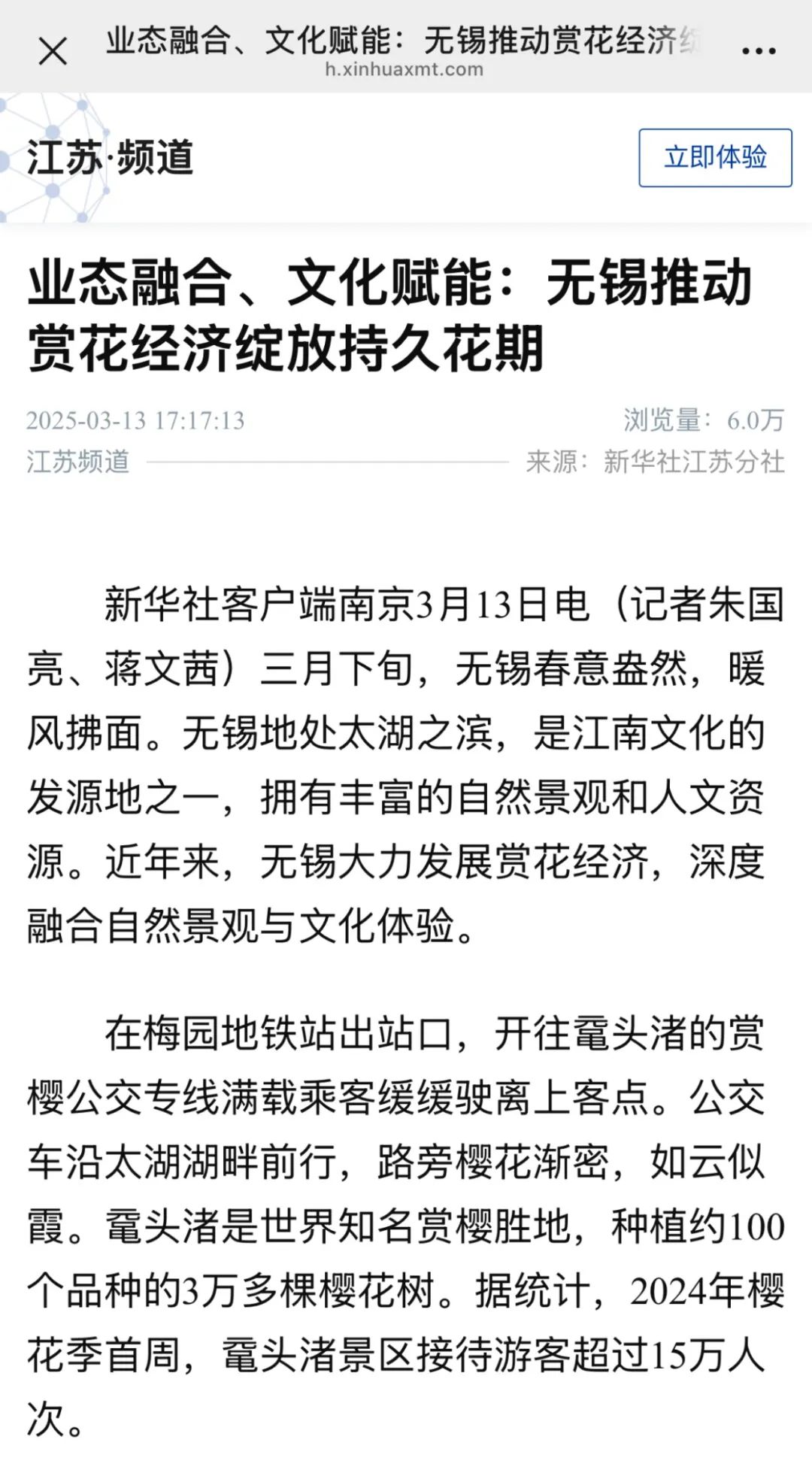 《业态融合、文化赋能:无锡推动赏花经济绽放持久花期》