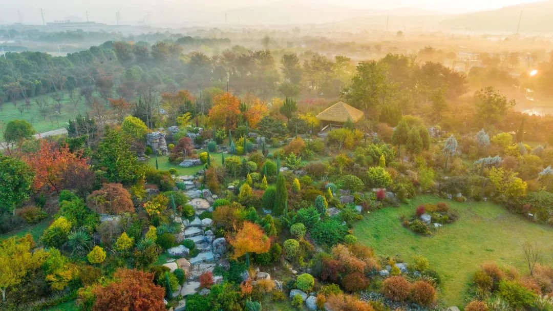 相较于单一品种的鲜花种植,多种植被共生的生态更好带给游客亲近自然的体验。在岩石花园区域,花星球景区总经理李玉祥设计了多层次的植被。树木的最高点是高大的落叶乔木金钱松和广玉兰;中间层次是茶梅、红枫;下层是郁金香和洋水仙等时令花草。植物次第开落,四时景致不同。随着植被和水环境的丰富,花园里喜鹊、蜜蜂等动物也越来越多。