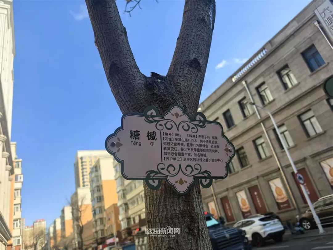 结合中央大街欧式建筑风格特色,3月14日,道里区园林局为中央大街沿街238株糖槭“挂牌”,逐一标号、一树一档,便于发现问题、精准管理,同时科普宣传树木品种和习性等。