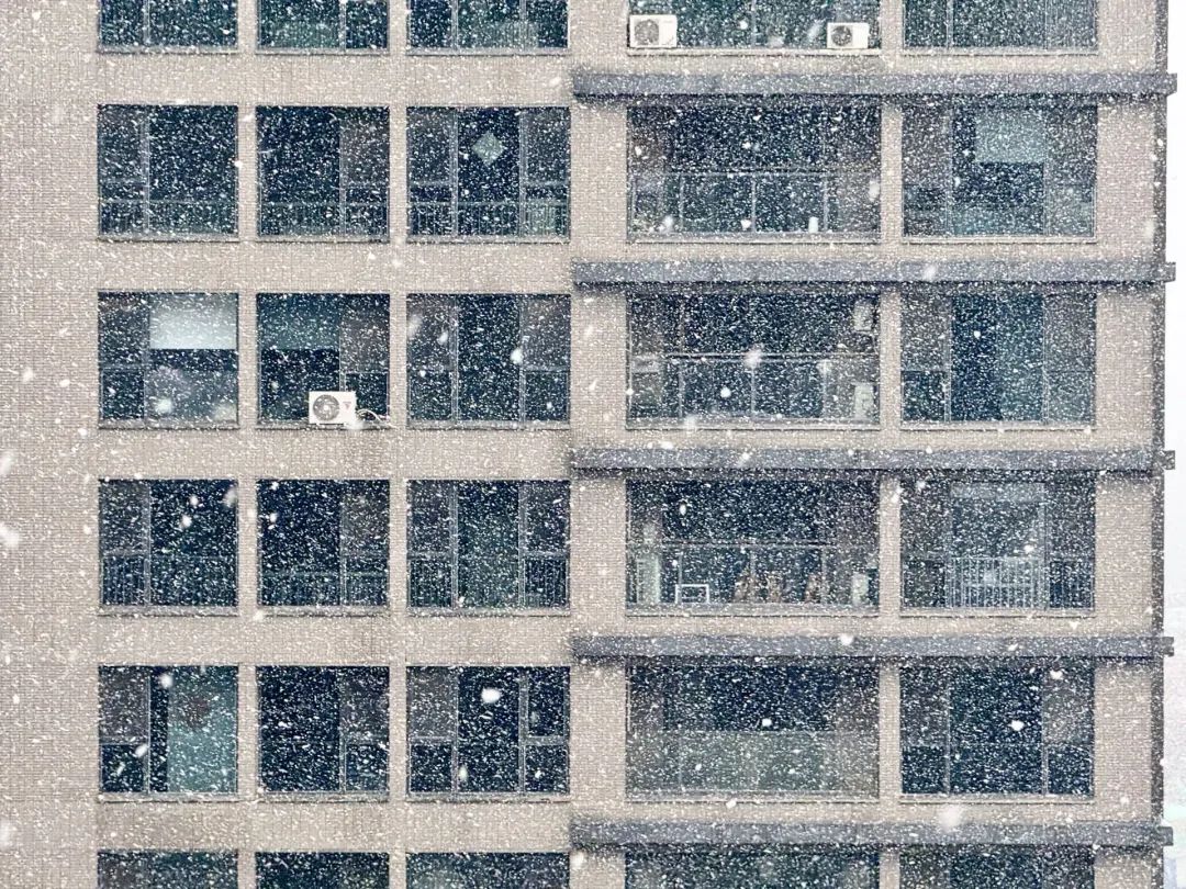△ 16时30分许,北京东三环附近出现明显降雪。△ 北京朝阳区降雪。