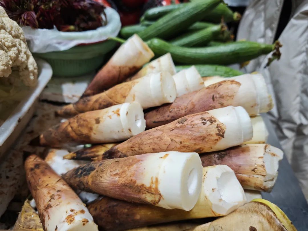 SPRING IS COMING春笋是春季最具代表性的时令蔬菜之一,素有“山八珍”之称。每年立春至清明前后,随着春雨滋润,竹鞭萌发的笋芽破土而出,此时采摘的春笋质地脆嫩、清甜多汁,是短暂而珍贵的自然美味。 这几天的马陆菜场,几乎每个蔬菜摊位上都摆放着新鲜的春笋,成堆的春笋像裹着褐袄的胖娃娃,歪歪扭扭的摞在竹框里。