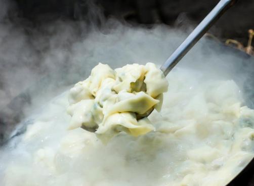 荠菜馄饨制作起来非常简单,只要将洗净焯水后的荠菜切碎,与肉馅、姜末、盐、生抽和香油搅拌均匀,就调成了清香鲜美的荠菜馅。再取一张馄饨皮,放入适量馅料,对折捏紧边缘,再将两角向内折叠,一个造型圆润的馄饨就做成了。荠菜的清香与肉馅的鲜美相得益彰,成就了一道地道的春日美味。