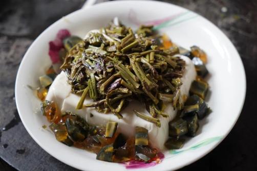 剩下的香椿,顾阿姨打算试试凉拌香椿和炸香椿。她将香椿焯水后沥干水分,嫩豆腐中提前加盐腌制片刻,再将香椿放入锅中翻炒后晾凉切碎,加入皮蛋碎、生抽、香油拌均,一道清爽可口的凉拌香椿就做好了。