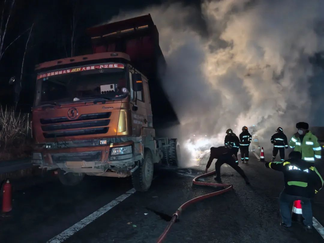 3月12日21时10分许,吉林省公安厅交通管理总队高速公路延边支队巡逻六大队民警接到报警,称松长高速4公里处,有一辆大货车发生自燃。