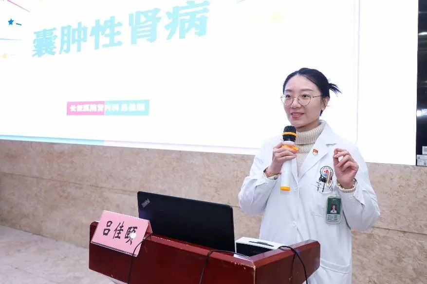 第二场《囊肿“三兄弟”》科普讲座由肾脏病科吕佳颐副主任医师主讲,通过图文并茂的展示,介绍了囊肿“三兄弟” ——单纯性肾脏囊肿、遗传性肾脏囊肿、获得性肾脏囊肿的基本概念、发病原因、治疗手段等,揭开了其神秘面纱,让大家对肾脏病囊肿“三兄弟”有了清晰的认知。她还特别提醒大家,日常体检中若发现肾脏囊肿,不要惊慌,应根据医生建议,定期复查或采取相应治疗措施,理性应对。