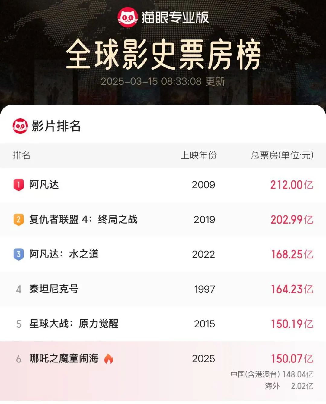 《哪吒2》票房炸裂直冲全球前五!