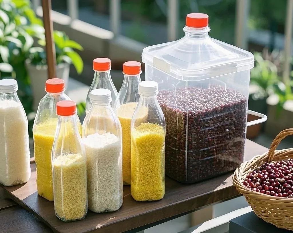 有些人用塑料饮料瓶装大米、小米、红豆、调味料等食物,一用就是大半年,甚至好几年都不换。