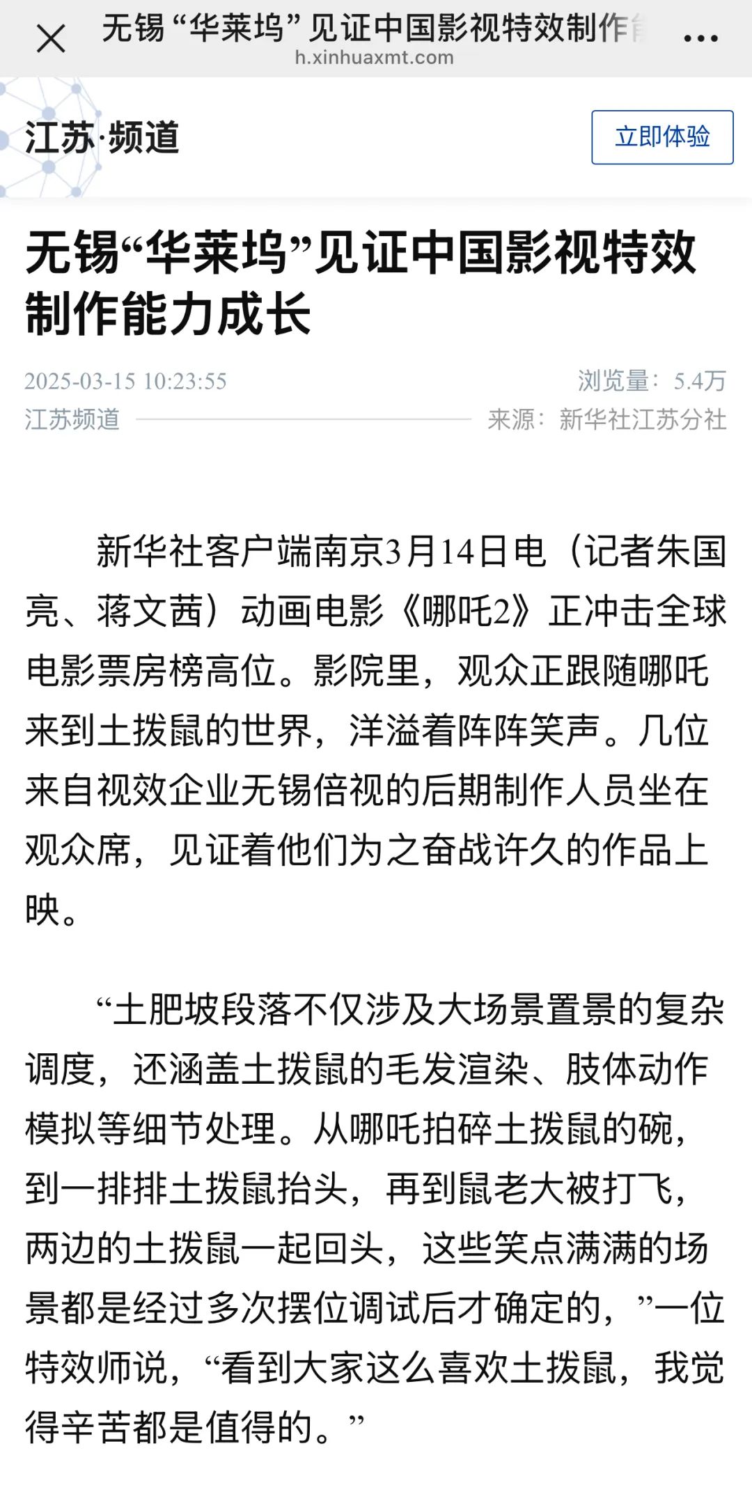 新华社本周再度点赞滨湖:“华莱坞”见证中国影视特效制作能力成长