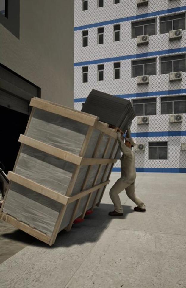 工人安全意识不足,用手扶倾倒的货物,被货物砸中压至地面受伤。