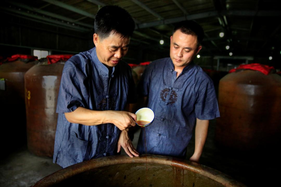 △图左为钱建华钱建华建立技能大师工作室,开展名师带徒授艺,传授白酒酿造、蜜酒制作,药材鉴别、提取,五加皮酒勾调工艺。已有多名徒弟全面掌握五加皮酒酿酒技艺,成为五加皮酒文化骨干力量。