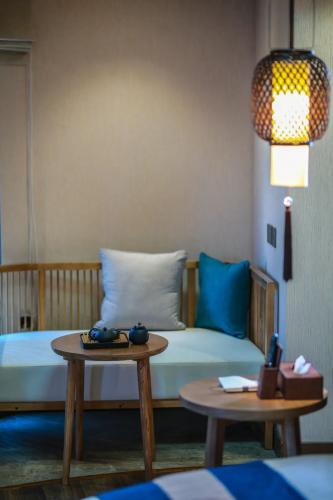 客栈以十二星次和二十四节气为主题,拥有49间精致客房。装修风格古朴典雅,巧妙融合中式与现代风格。