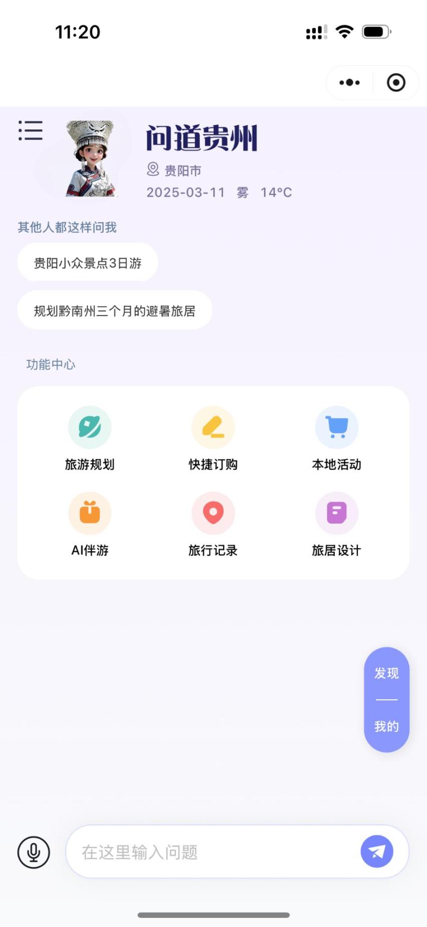 由贵州贵旅数网科技有限公司开发的贵州省旅游服务智能体——“问道贵州”,将助力贵州旅游资源精深开发、客源精准拓展、服务全面升级,数字化赋能贵州旅游业高质量发展。“问道贵州”已于3月18日正式启动测试,面向全国公开招募首批体验用户。