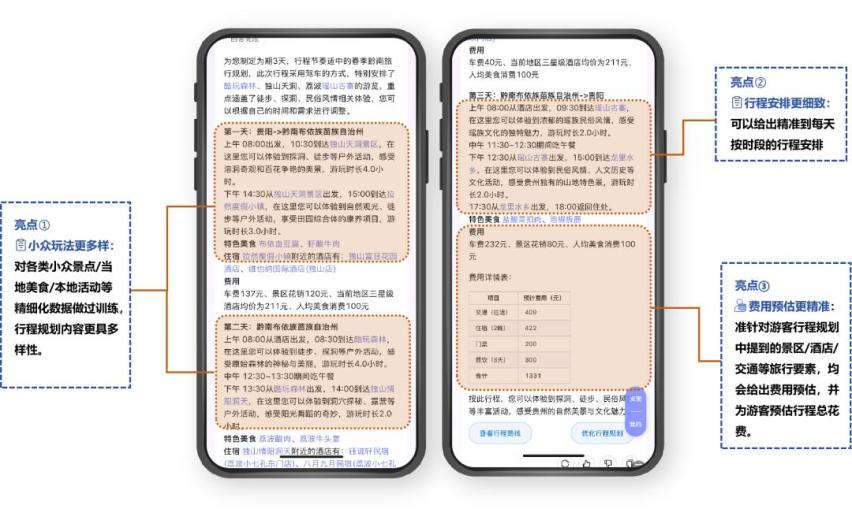 在传统旅行规划中,游客需耗费数日比对景点、交通、住宿信息,而“问道贵州”的行程规划更精准更合理、产品订购更简易、过程体验更贴心,真正让AI技术成为可信赖的"数字向导"。