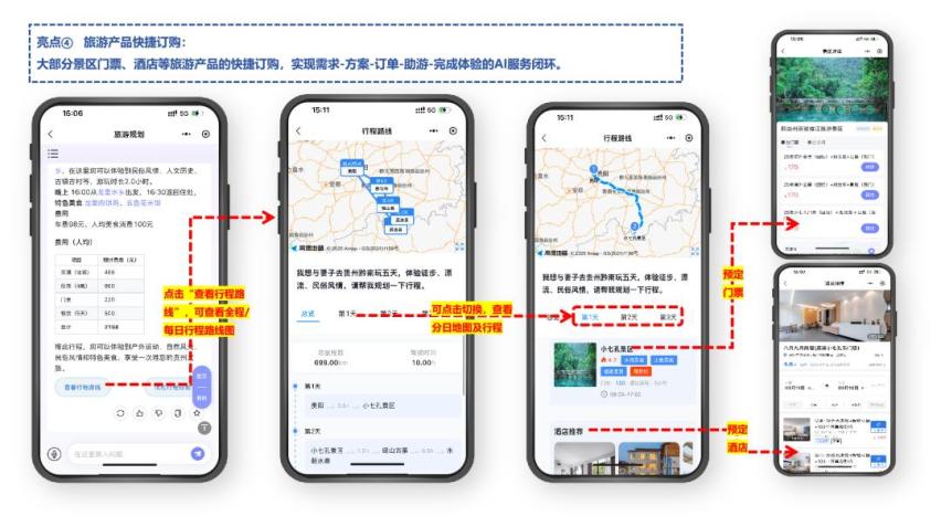 与此同时,游客在完成行程规划后,还可完成大部分景区门票、酒店等旅游产品的快捷订购,实现游客从提出需求到实现线上下单的交易闭环: